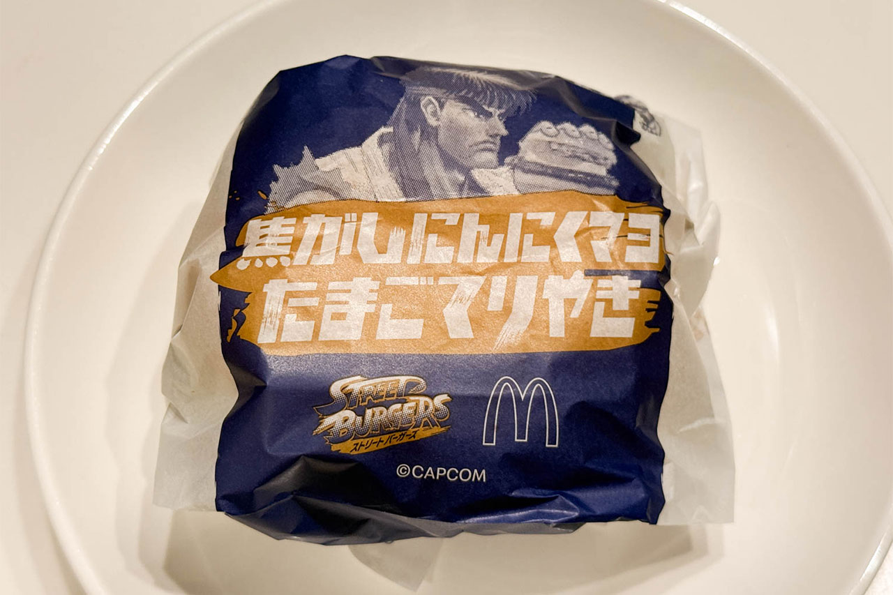 ストリートファイターとのコラボ「STREET BURGERS」という企画で生まれたバーガーの一つである「焦がしにんにくマヨたまごてりやき」。