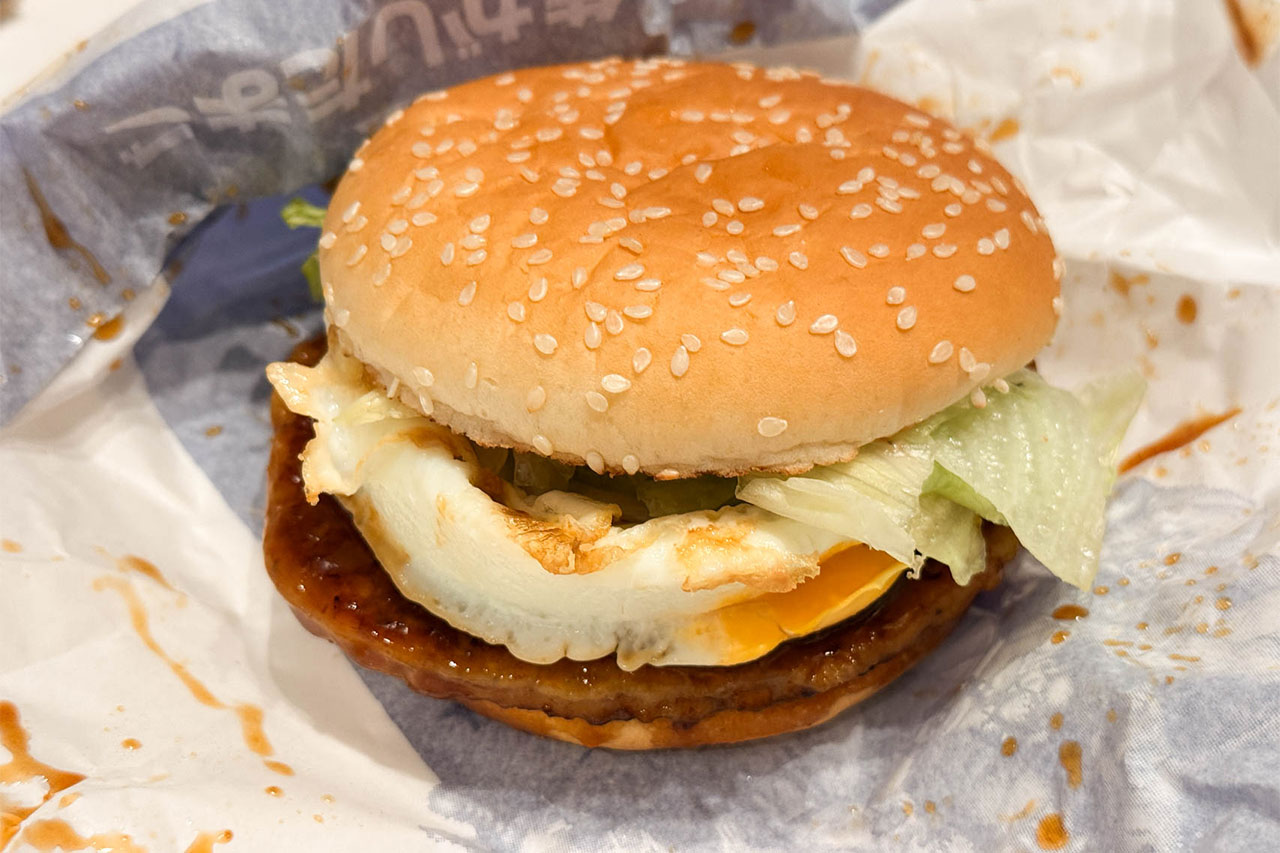 てりやきバーガーにたまごと焦がしにんにくマヨソースが加わったバーガーです。