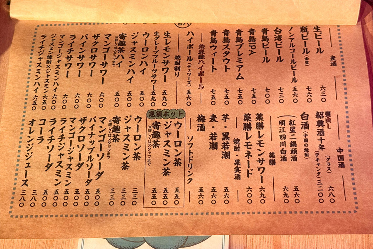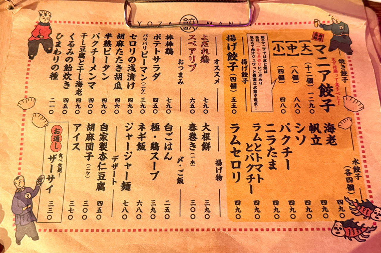 メニューはこんな感じ。ほぼ餃子で、あとはつまみっていう感じのラインナップです。