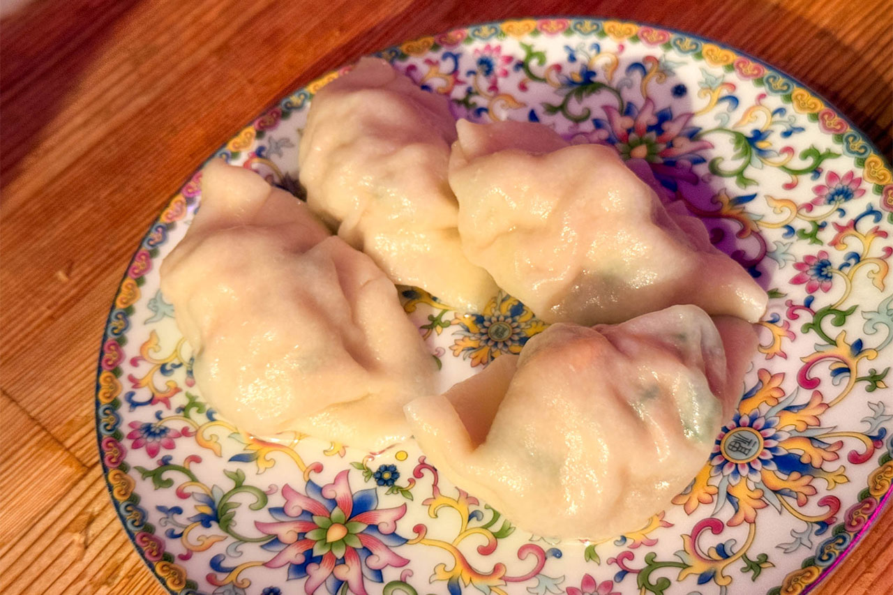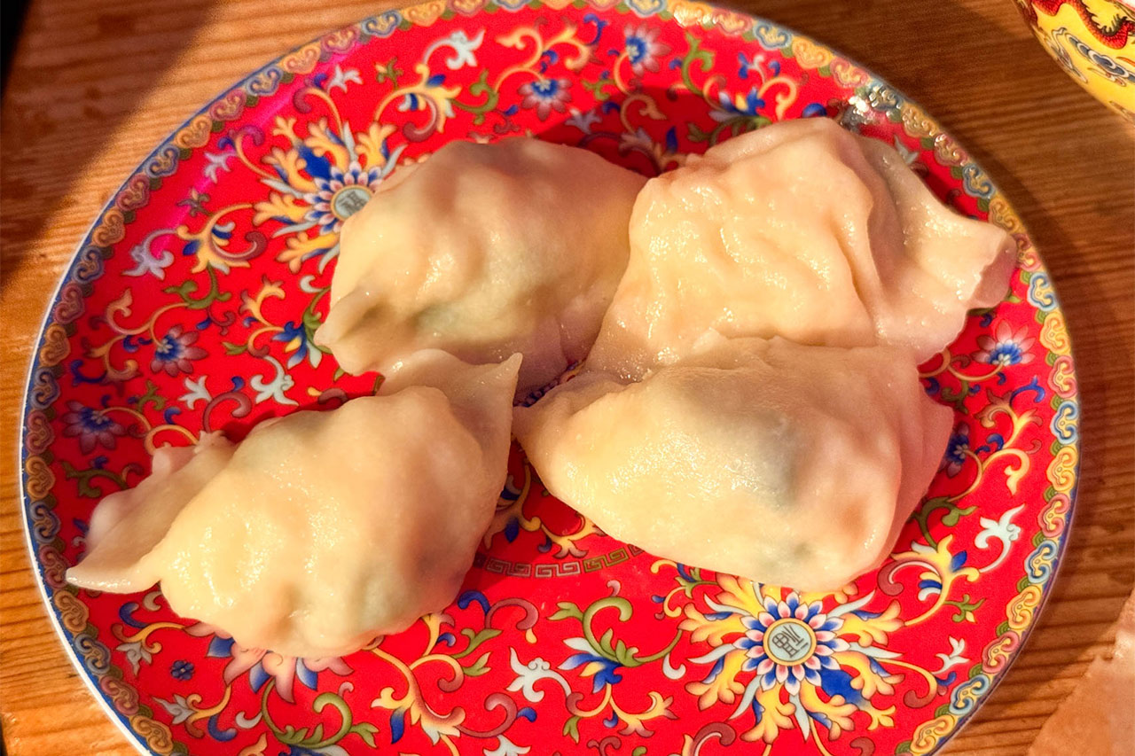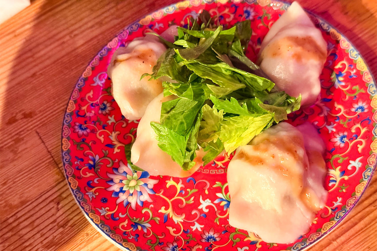 ラムセロリの水餃子。ラムのクセがあったので僕は苦手でした。奥さんは好きだったようです。