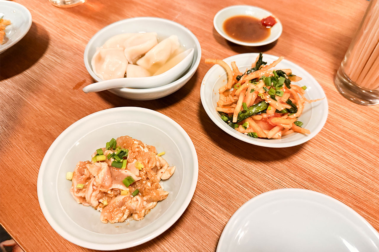 水餃子・大根キムチ・とりわさ。どれもクラフトビールと一緒に食べるとより美味しく感じました。