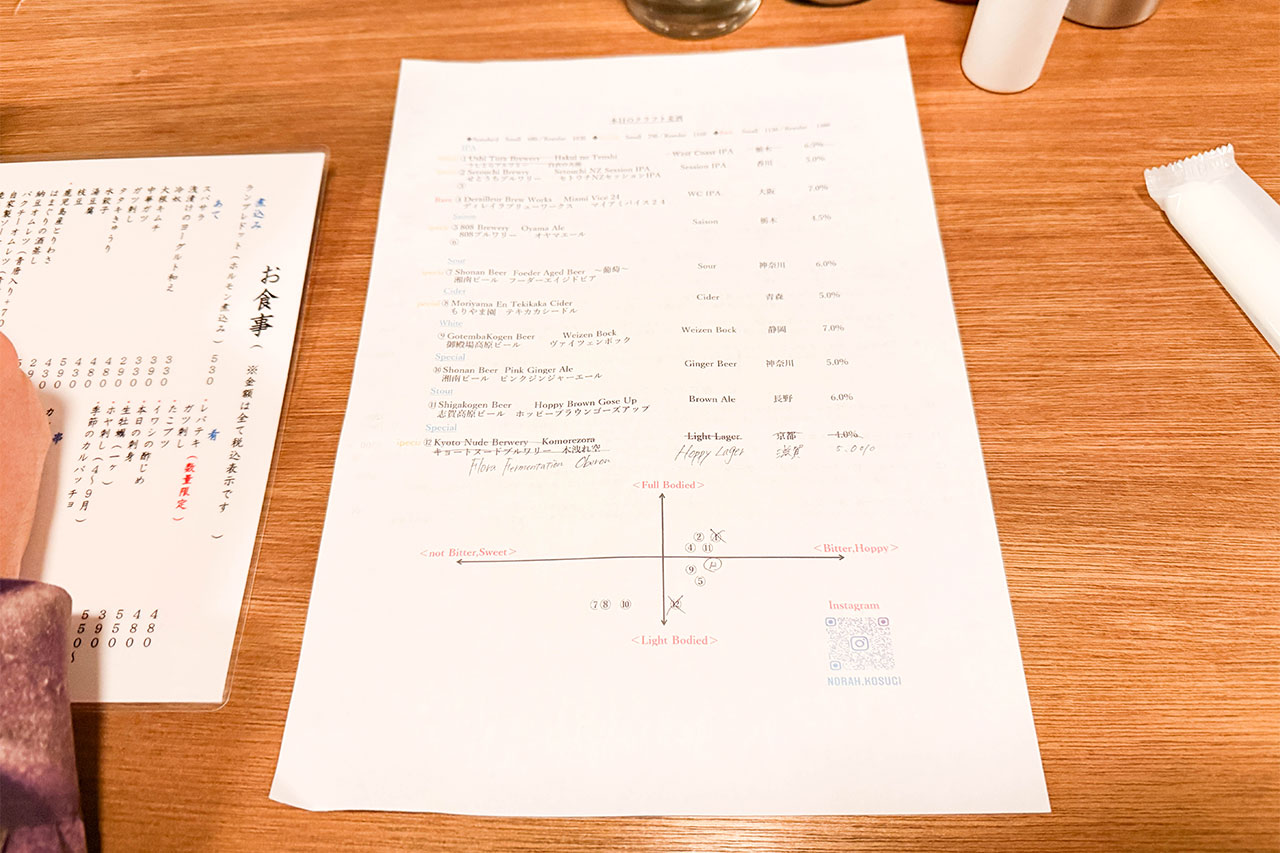 写真の撮り方をミスって読みにくくて申し訳ないですが、こちらがNorahのクラフトビールメニュー。