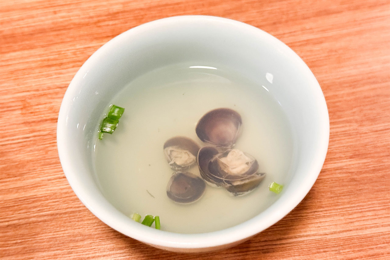 お会計の際にはしじみのスープをいただけます。こちらもめちゃめちゃ美味しかったです。