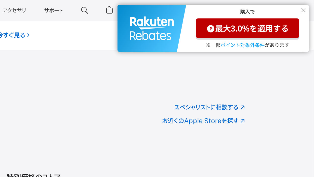 楽天リーベイツ経由だと、Appleの初売りが3%ポイント還元になってました。(普段は1%のはず)