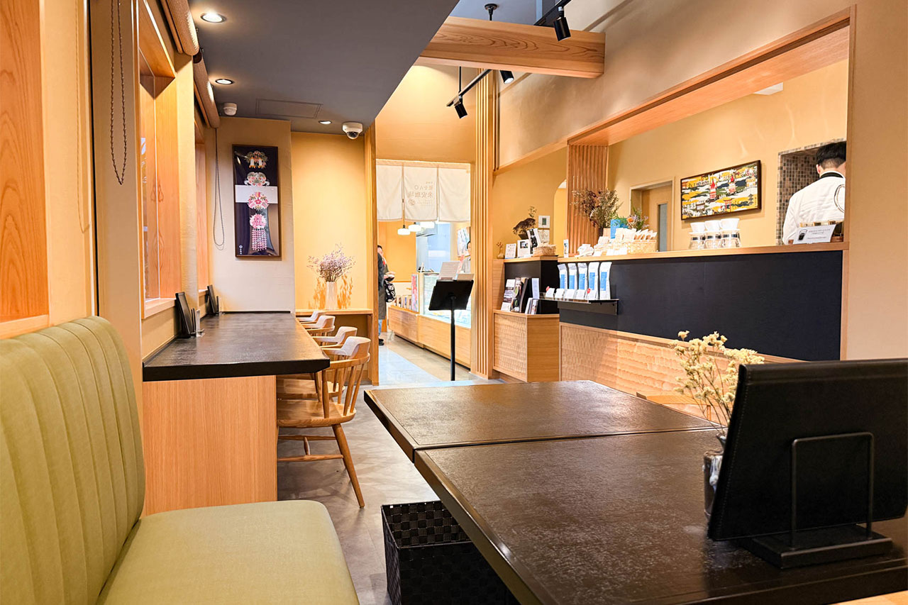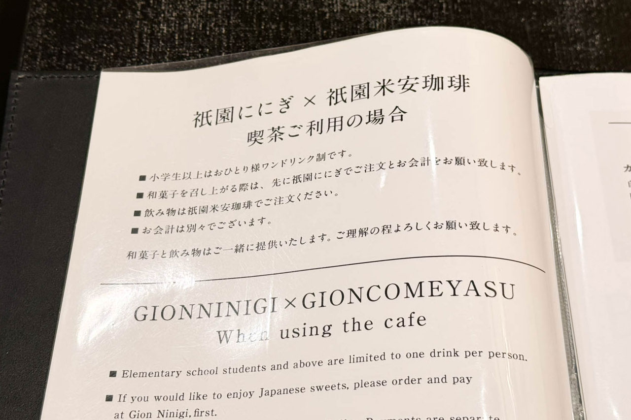 ににぎ祇園本店の店内奥には「米安珈琲」が併設されてきて、ににぎで買った和菓子を米安珈琲の店内でいただけます。