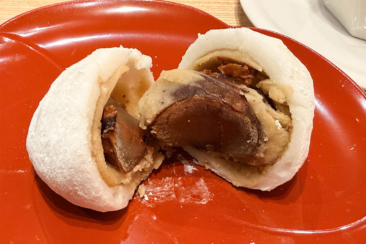 中に入ってる栗の甘露煮自体の旨味がすごくて、周りの栗餡もうまいし、大福も柔らかくてうまくて、とにかく最高でした。