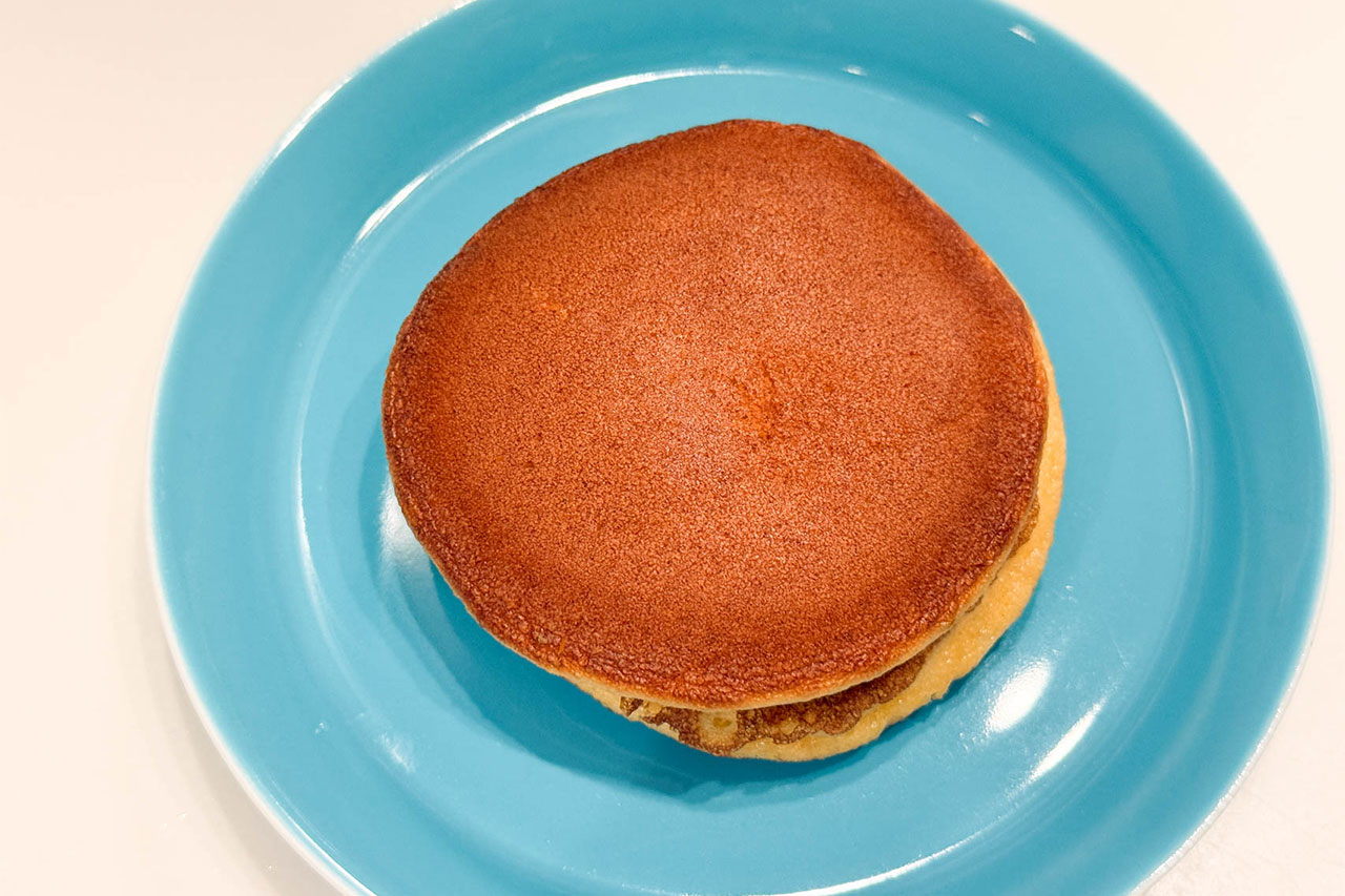 上から見ると一般的などら焼きのそれです。カステラのような甘味と旨味のある生地がめちゃめちゃ美味しいです。