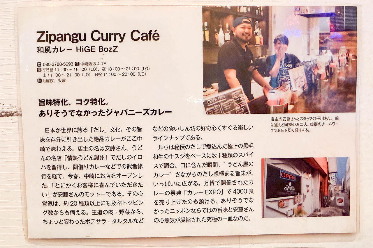 梅田周辺にある「ジパングカリーカフェ」は、正式名称は「ジパングカリーカフェ 和風カレー HiGE BozZ 中崎町本店」というようです。