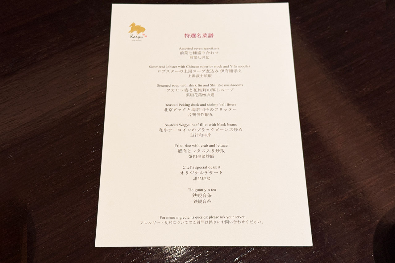 インターコンチネンタルホテルの中国料理「驊騮(カリュウ)」にて、家族でディナーしてきました。