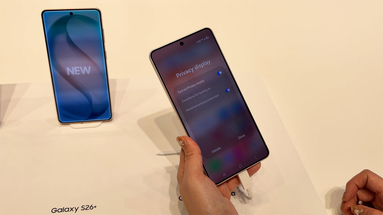 Samsung Galaxy S26+の特徴はプライバシーディスプレイです。