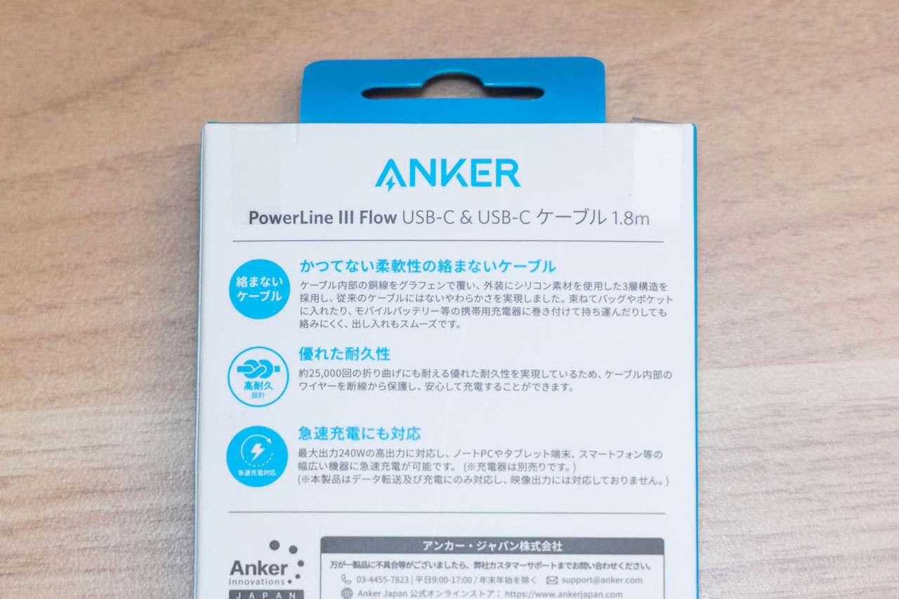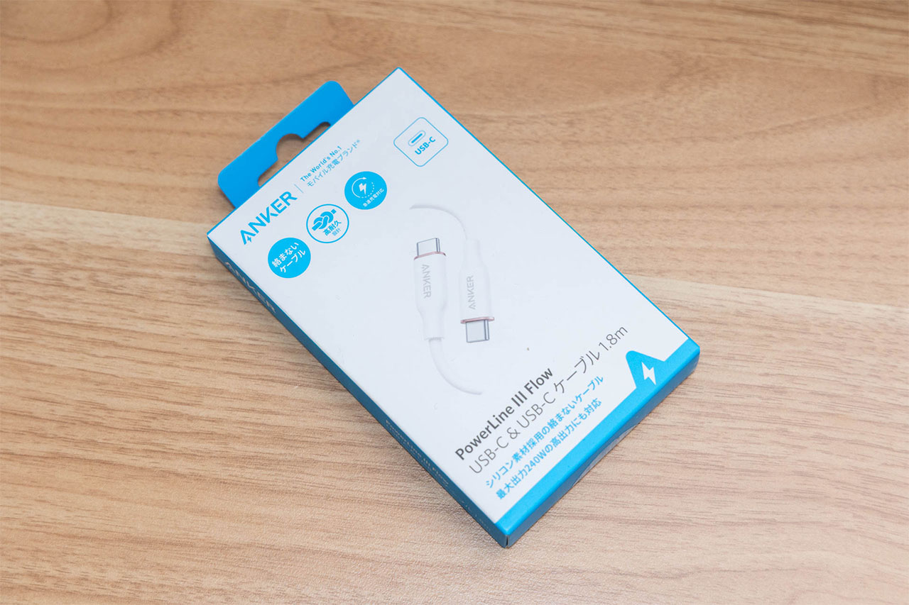 「絡まないケーブル」ということで、表面がスベスベしていて触り心地が良いです。