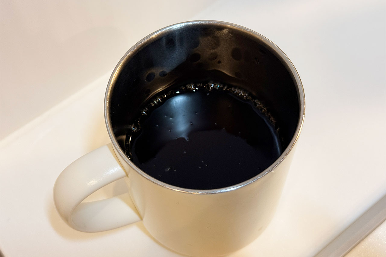 我が家に透明なグラスがないのでマグカップでわかりにくいですが、色はコーラくらいの黒さです。